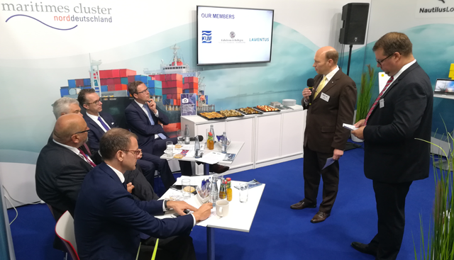 Eingeladen hatten Peter Moller und Dr. Tobias Wesnigk vom Maritimen Cluster Norddeutschland (MCN). Das MCN hat die künftige Begleitung in Form einer Arbeitsgruppe übernommen.