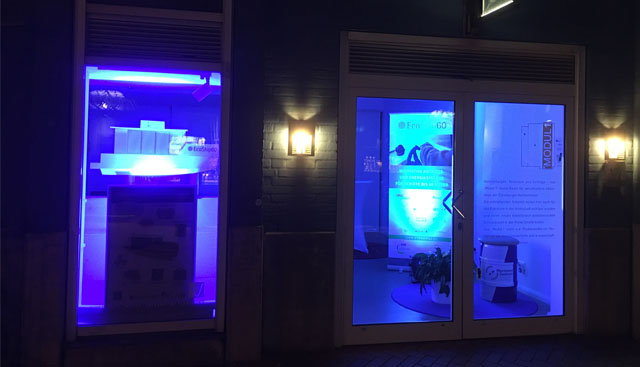 Die Galerie „Modul1“ ist ein Ausstellungs- und Begegnungsraum. Mitten in der Innenstadt werden hier Aktivitäten der Flensburger Hochschulen gezeigt. Die EcoShip60-Austellung kann noch bis zum 31. Juli begutachtet werden, danach nochmals in den letzten beiden August-Wochen.